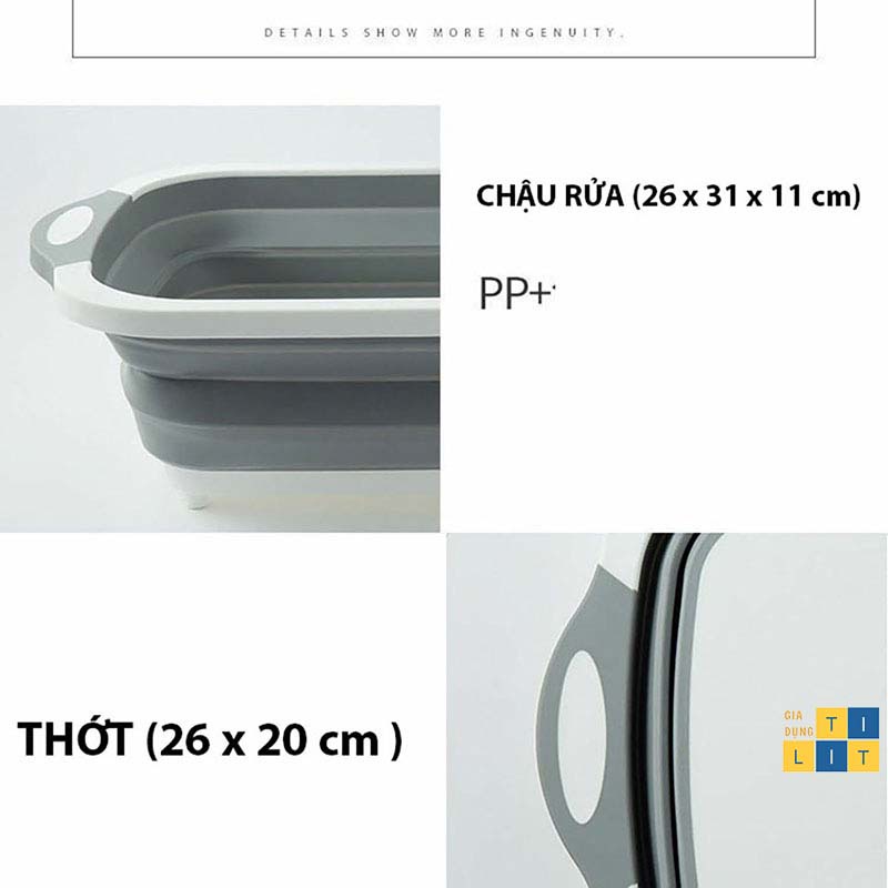 Chậu, thau kiêm thớt đa năng gấp gọn tiện dụng 3 trong 1 kích thước 30 x 40cm [CHẬU THỚT]