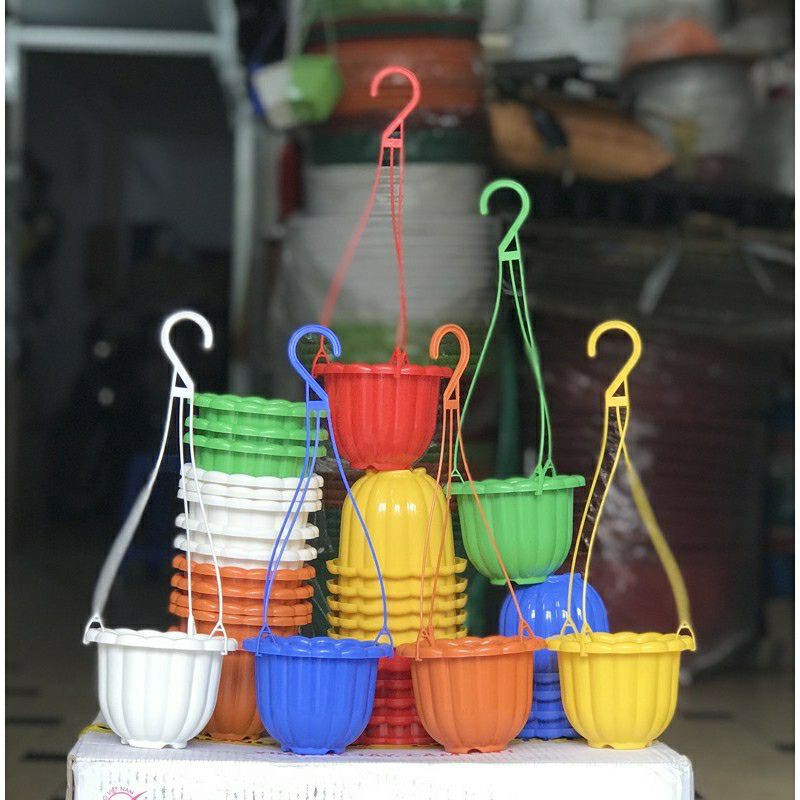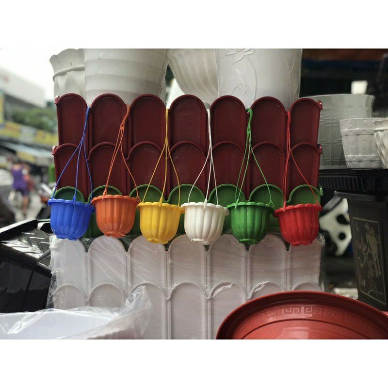 chậu treo mini đường kính 10cm, cao 8cm. bao gồm chậu và dây treo.có màu đỏ, hồng, cam, trắng, xanh.