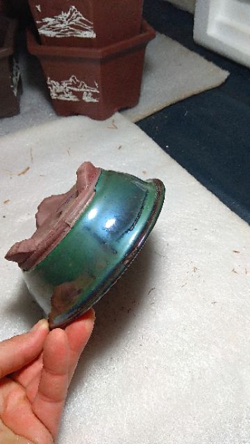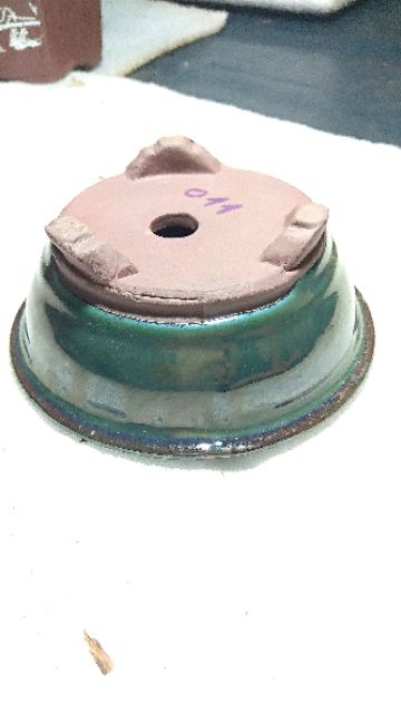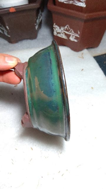 Mô tả sản phẩm.Chậu gốm men xanh, chậu bonsai tròn