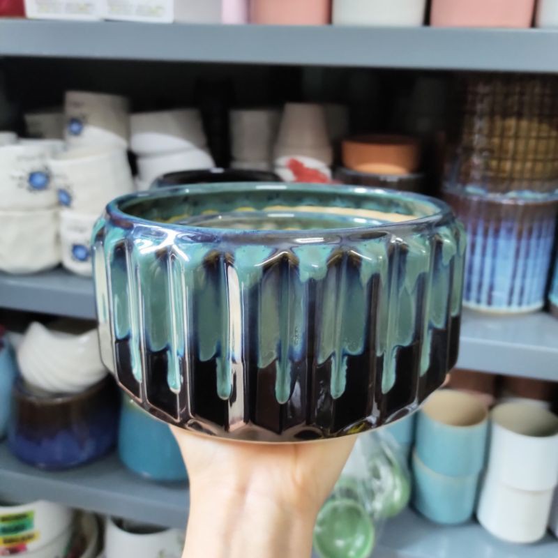 Nhà cửa & Đời sống > Làm vườn > Chậu cây || Chậu trồng cây Ang trụ khía, chậu múi trồng cây cảnh men hỏa biến, gốm sứ Bát Tràng cao cấp, phù hợp trồng cây văn phòngCòn hàng