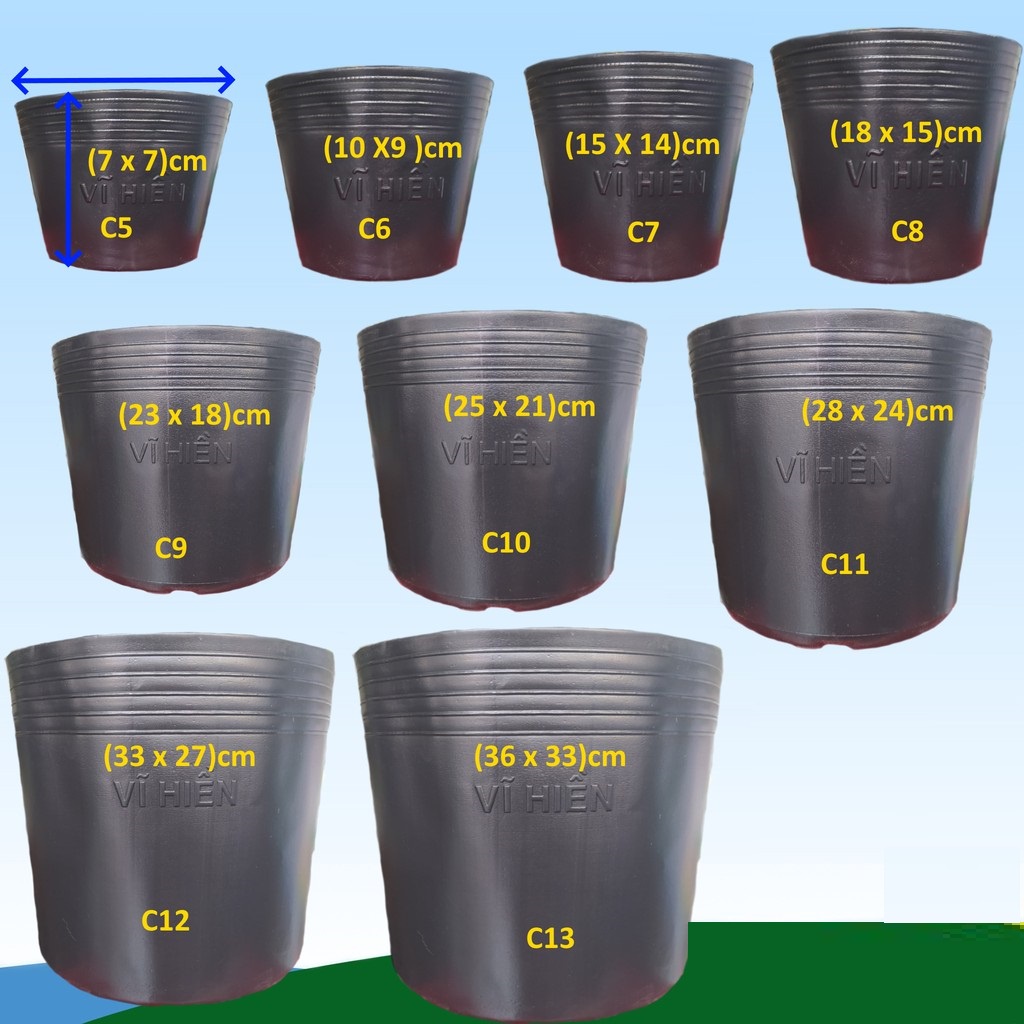 * Chất liệu: nhựa HDPE đàn hồi, có độ bền cao, hạn sử dụng lâu.* Công dụng: Dùng để ươm cây, trồng cây, trồng các loại hoa bụi nhỏ như đồng tiền, hoa hồng, ươm cây rau mùi.v.v