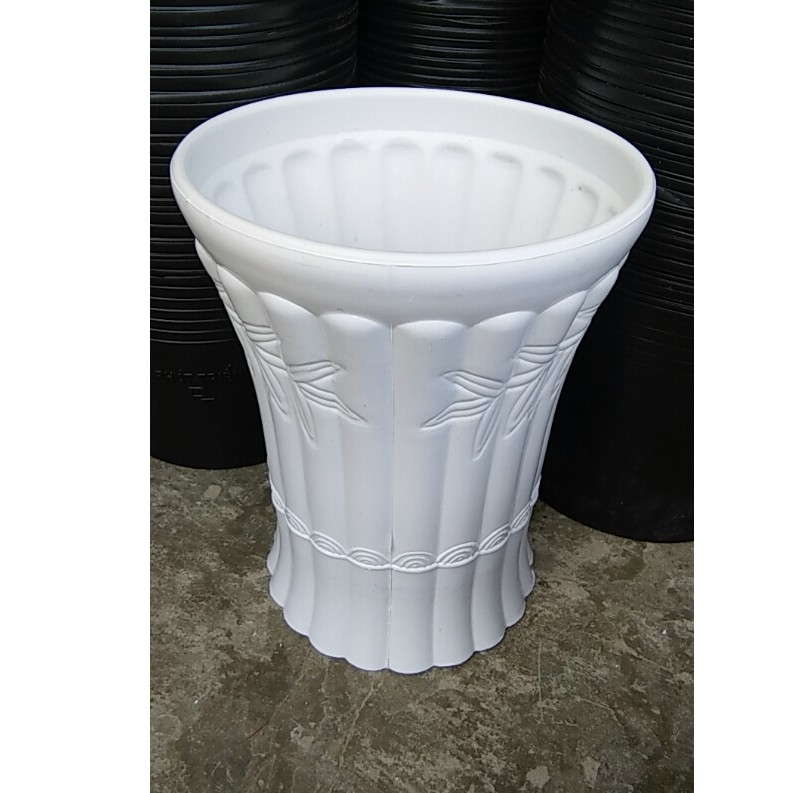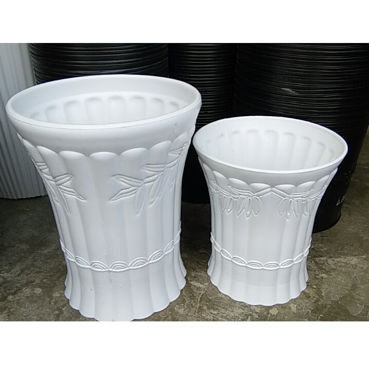 * Chậu nhựa trồng cây hoa văn trúc có kiểu dáng đầy đặn vững chãi.