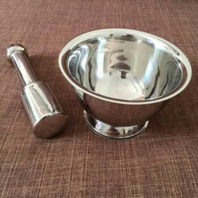 Bộ chày cối inox (nên mua riêng sản phẩm này vì đây là sản phẩm rất nặng ký ... khi gộp chung với sản phẩm rất dễ bị bẹp sp đi kèm và phải chịu phí vận chuyển cao)Bộ chày cối bằng chất liệu inox sáng bóng SUS304