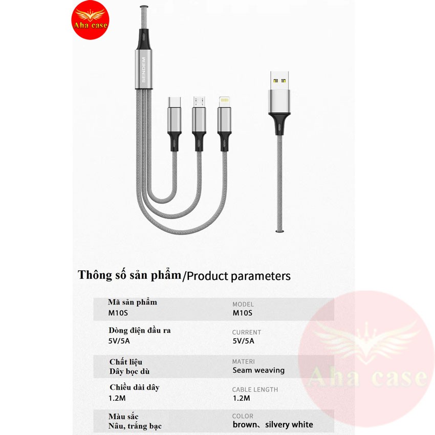 Giới thiệu [Bán Chạy-Freeship] Cáp sạc 3 chân dây dù chính hãng Sendem M10s, Sạc 3 điện thoại 1 lúc 3in1 sạc nhanh, bảo hành 1 năm