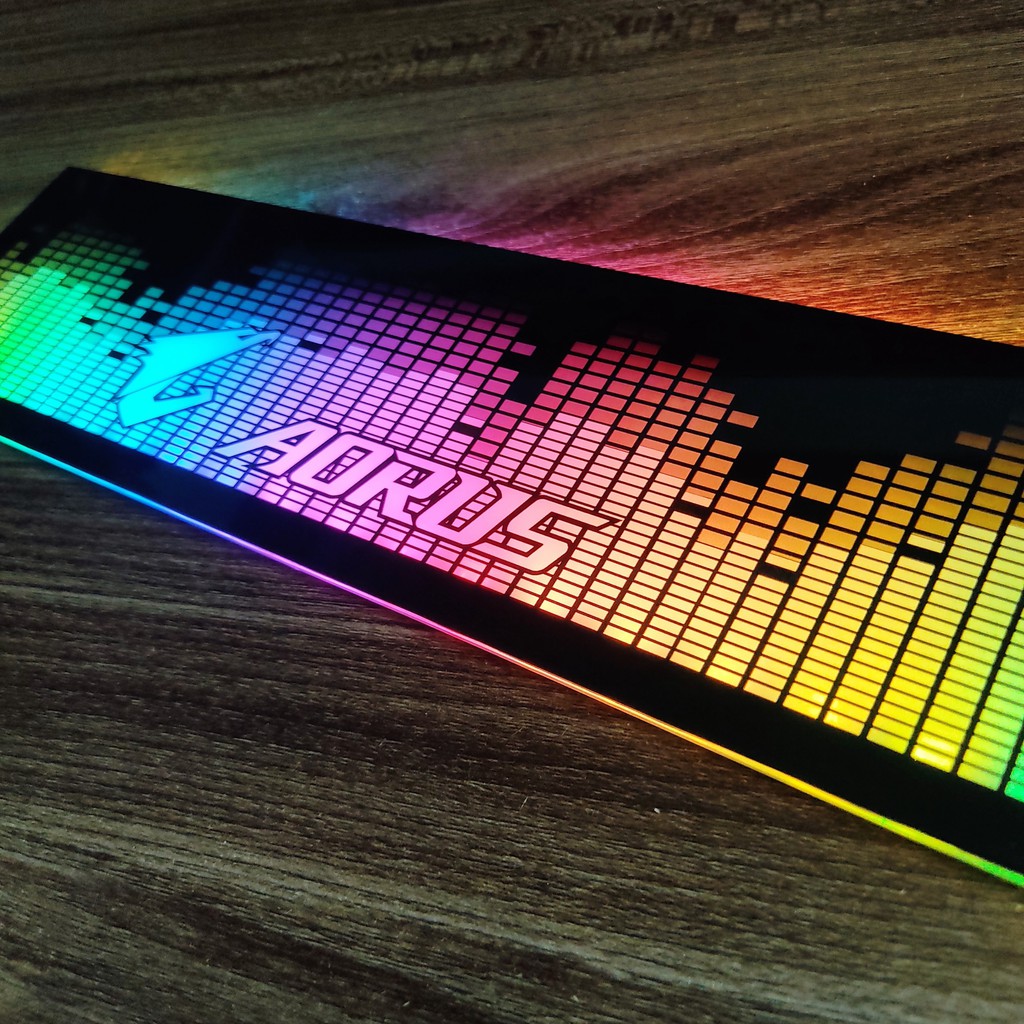 Tấm che hộp nguồn PC Led 5v ARGB logo Aorus, đồng bộ màu Hub Coolmoon, hình sóng nhạcChất liệu: Mica 2 lớp siêu bền và chất lượng.