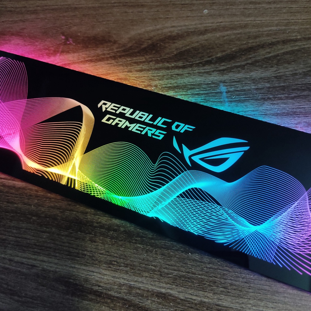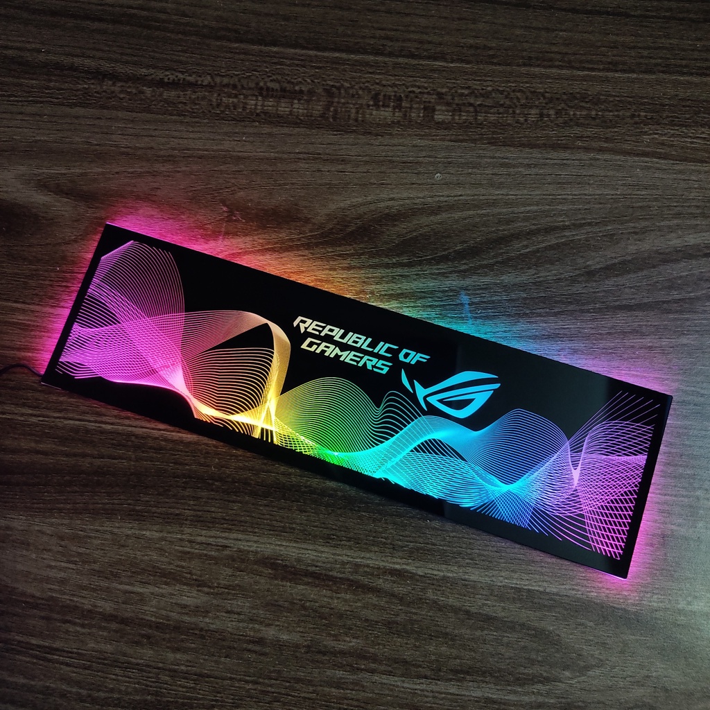 Tấm che nguồn PC Led RGB 5v ARGB logo ROG, đồng bộ màu Hub Coolmoon, hình sóng vô cựcChất liệu: Mica 2 lớp siêu bền và chất lượng.
