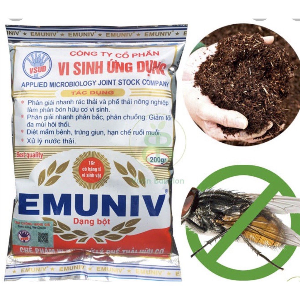 Chế phẩm EM EMUNIV vi sinh ủ phân hữu cơ, ủ rác thải, chuyển hóa phân bón khó tiêu thành dễ tiêu gói 200g
