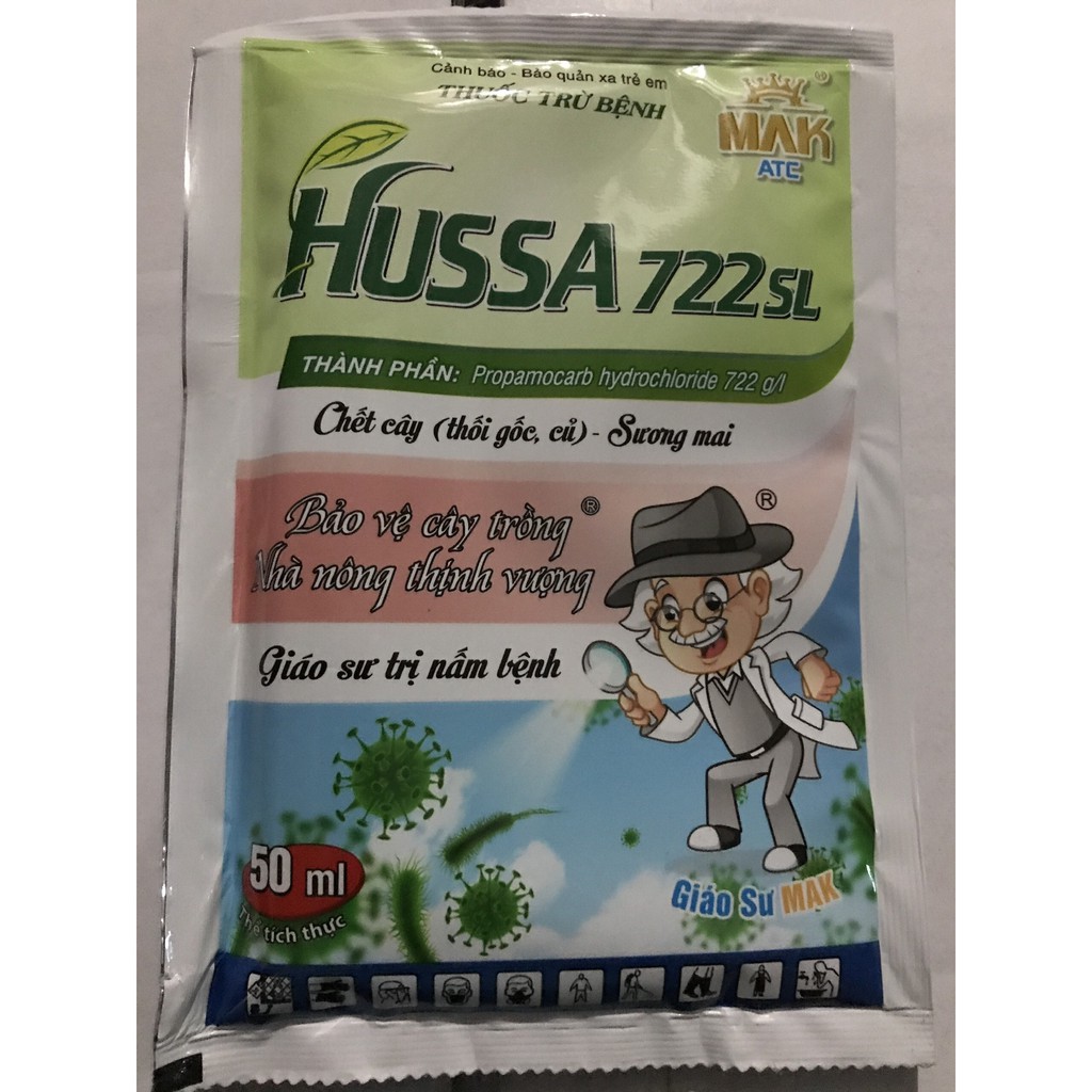 Hướng dẫn sử dụng: pha gói Hussa 50ml cho bình 16-25 lít nước, có thể sử dụng cho phun hoặc tưới gốc