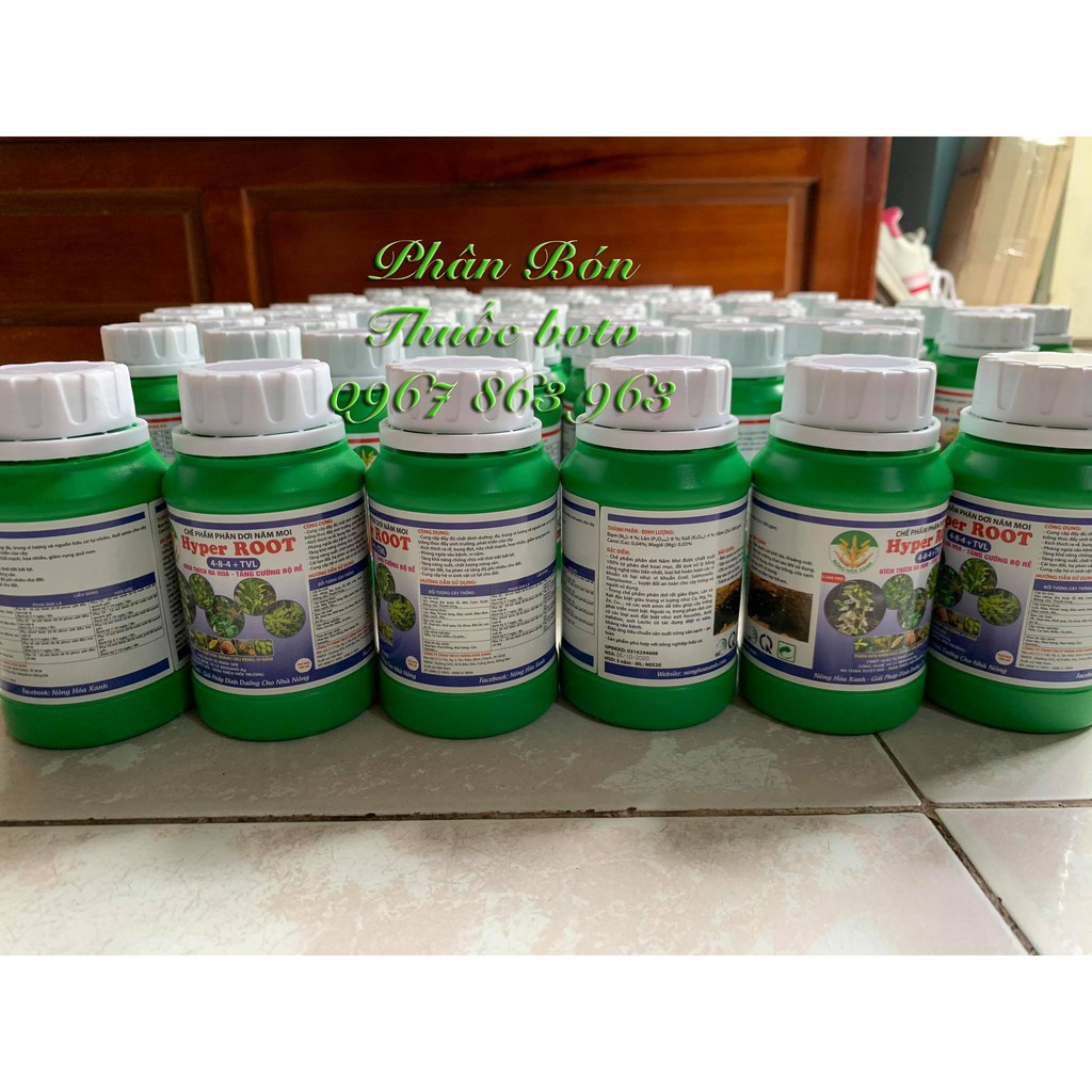 Giới thiệu Chế phẩm phân dơi HYPER ROOT 4-8-4 TVL kích thích ra rễ, bung đọt, nảy chồi mạnh, hoa nhiều, giảm rụng trái chai 180ml