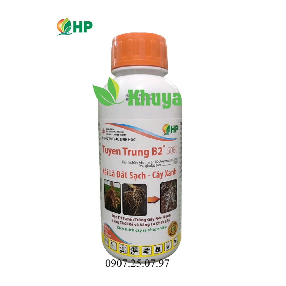 CÔNG DỤNG: Thuốc Tuyen Trung B2 50EC là thuốc đặc trừ tuyến trùng sinh học được bảo hộ ĐỘC QUYỀN ĐĂNG KÝ DUY NHẤT tại Việt Nam. Với công nghệ phối trộn tiên tiến hiện đại thuốc có tính loang trải và thẩm thấu nhanh vào bên trong đất, trong rễ cây giúp diệt ngay tức thì tuyến trùng từ trong trứng. Thuốc có tính kết dính trong đất cao và tan từ từ nên hiệu lực diệt tuyến trùng kéo dài. Khi phun hoặc tưới Tuyen Trung B2 50EC cây phục hồi nhanh, kích thích cây ra rễ tơ mới nhiều hơn.
