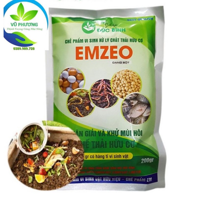 Chế phẩm vi sinh xử lý chất thải hữu cơ EMZEO dạng bột dùng để phân giải và khử mùi hôi phế thải hữu cơ. Với hàng tỷ sinh vật có lợi có trong 1gr, Emzeo còn tiêu diệt các vi sinh vật gây bệnh, chống ô nhiễm môi trường theo cơ chế sinh học.