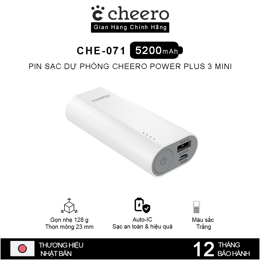 Điện Thoại & Phụ Kiện > Phụ kiện > Sạc dự phòng & Pin > Sạc dự phòng || Cheero Power Plus 3 mini 5200mAh CHE-071 - Hàng Chính HãngCòn hàng