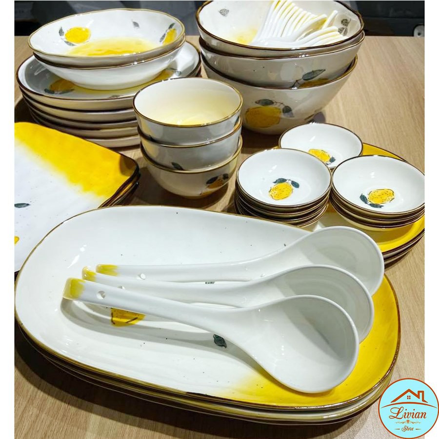 Nhà cửa & Đời sống > Bộ đồ bàn ăn > Tô || Chén ăn cơm - bát ăn cơm, muỗng thìa canh, bát gia vị họa tiết chanh vàng viền nâuCòn hàng