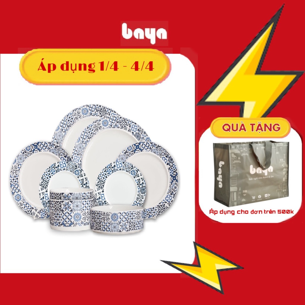Nhà cửa & Đời sống > Bộ đồ bàn ăn > Dĩa || Bộ Chén (Bát), Đĩa 9 Món BAYA ALBERTA Chất Liệu Sứ Trắng Men Bóng Cao Cấp, Họa Tiết Gạch Bông Màu Xanh 6000248Còn hàng