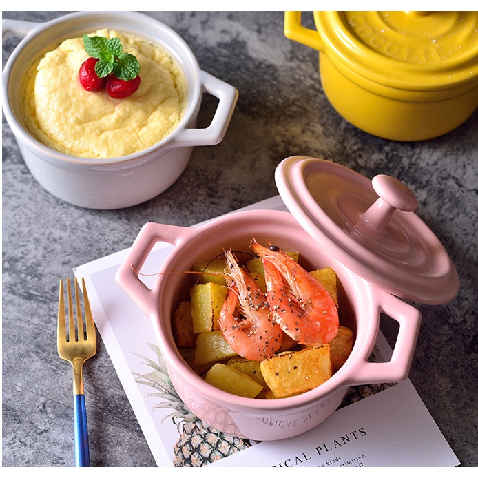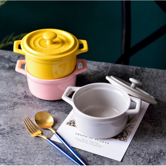 Nhà cửa & Đời sống > Bộ đồ bàn ăn > Tô || Chén Bát Gốm Sứ Decor Hình Nồi Có Nắp 330ml Cho Bếp XinhCòn hàng