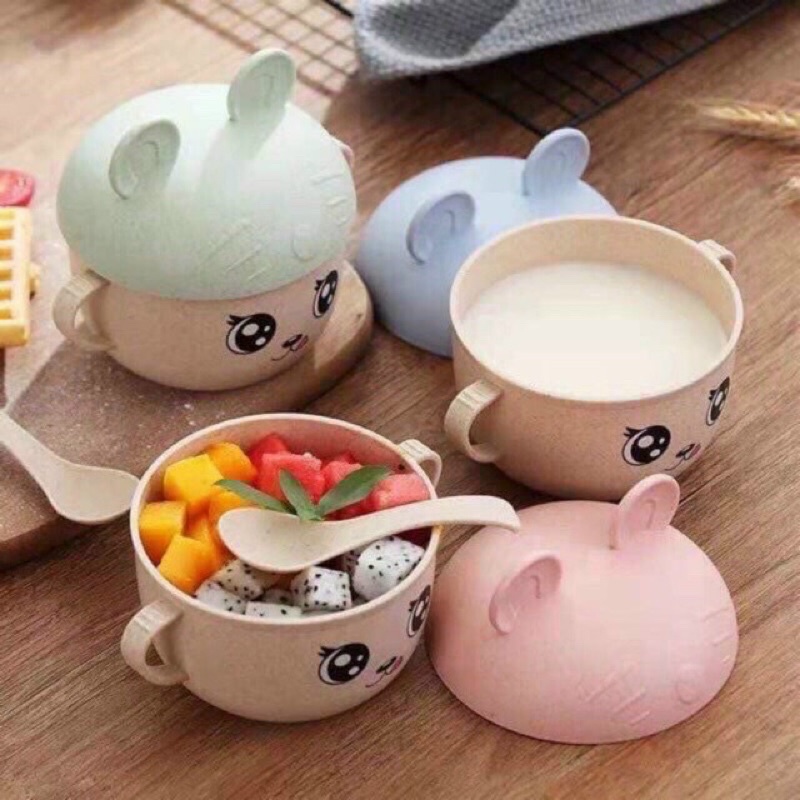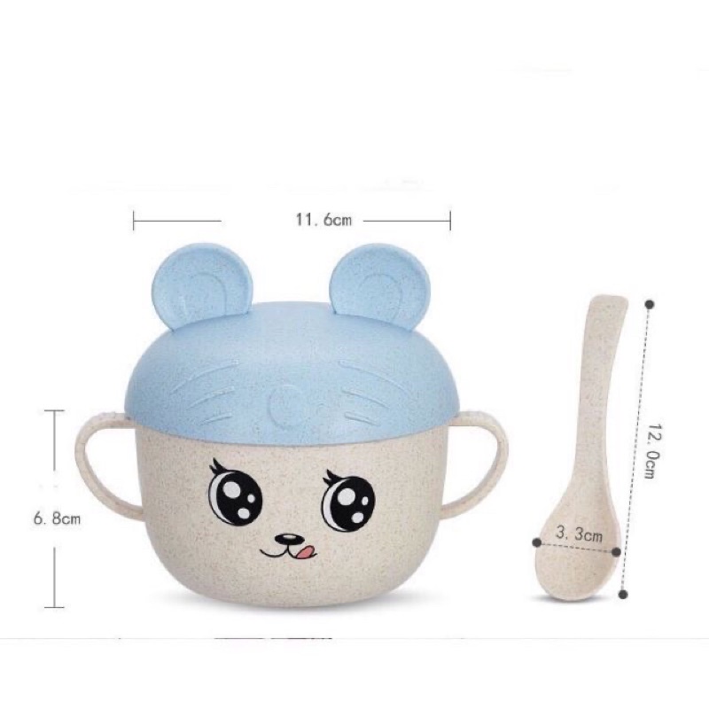 Chén bát lúa mạch có nắp đậy xinh xắn kèm muỗng