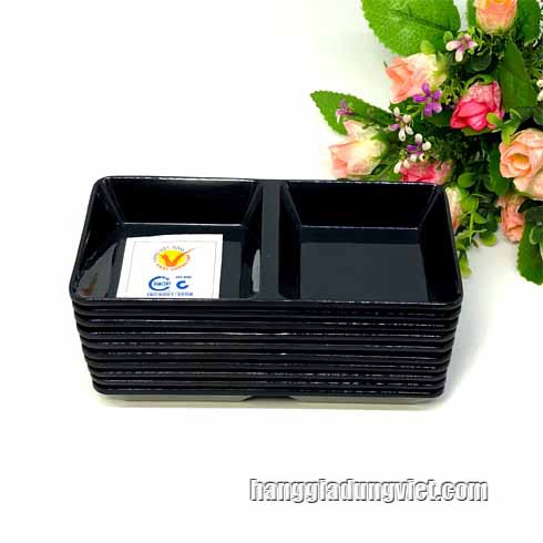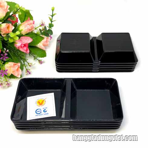 Giới thiệu chén bát nhựa chia nước chấm gia vị 2 ngăn màu đen