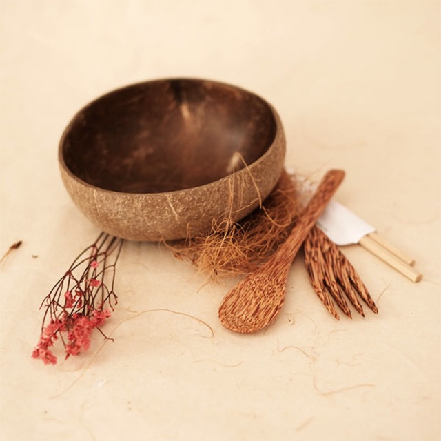 Bộ chén dừa 1 chén+1 muỗng+1 nĩa+1 đũa thân thiện