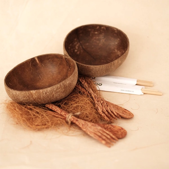* Combo: 2 chén gáo dừa/ 2 muỗng dừa/ 2 nĩa/ dừa/ 2 đũa tre