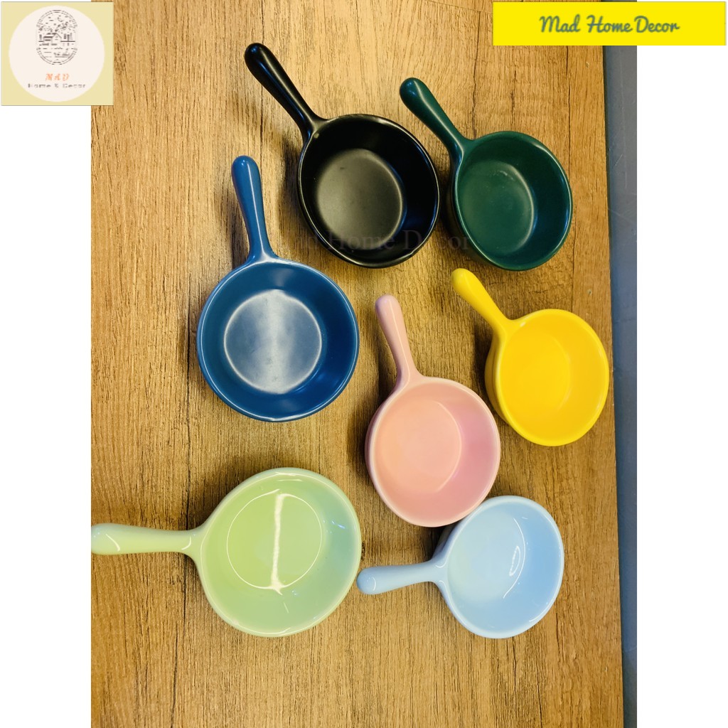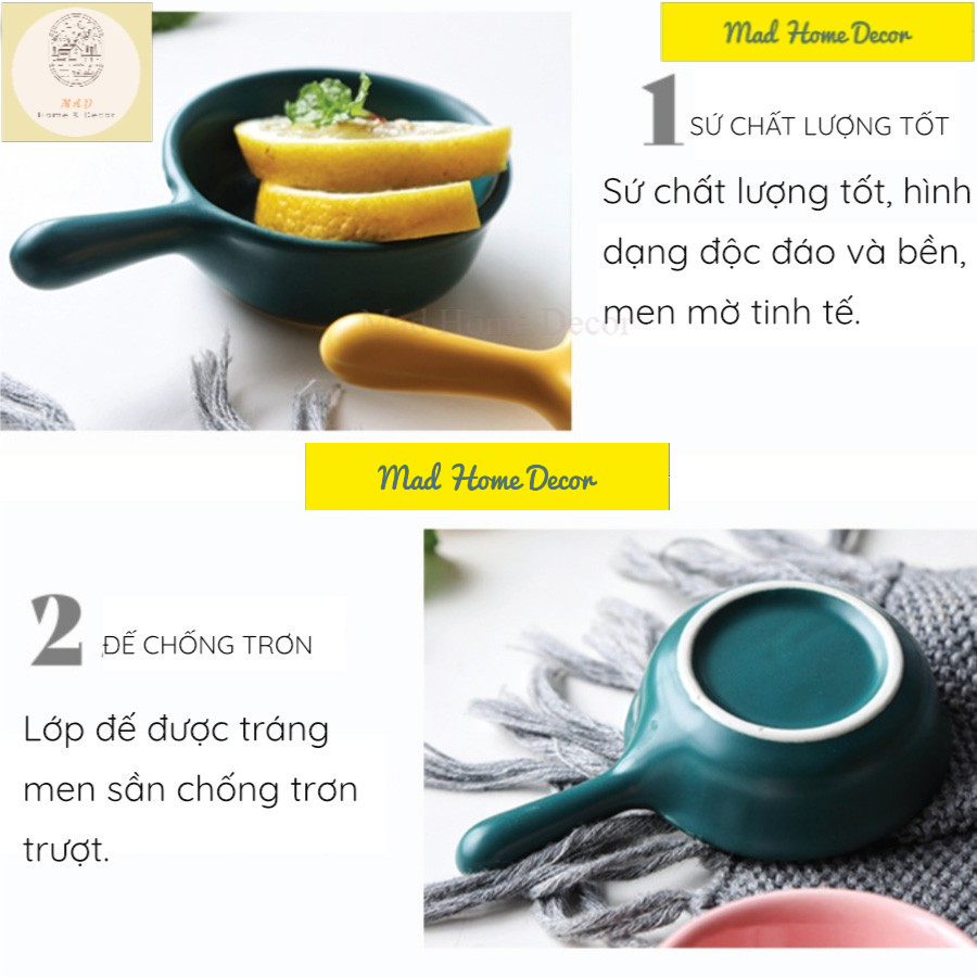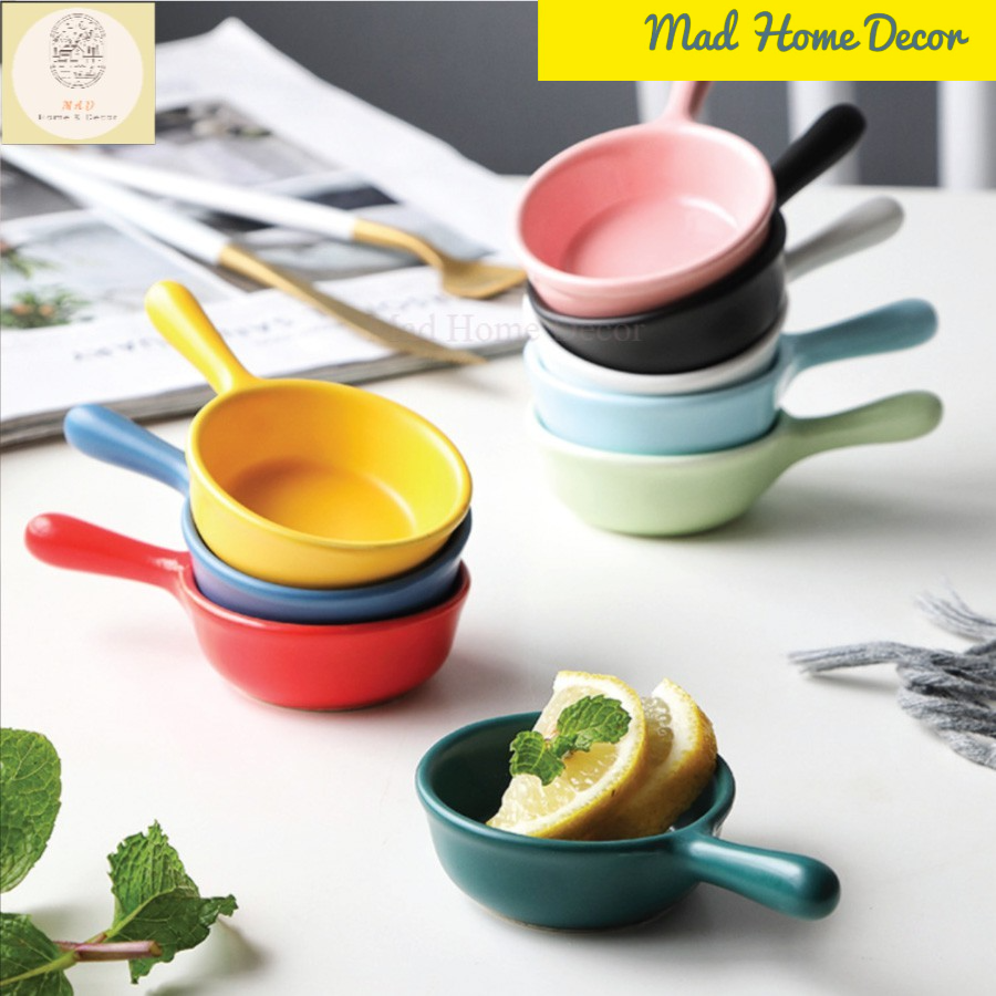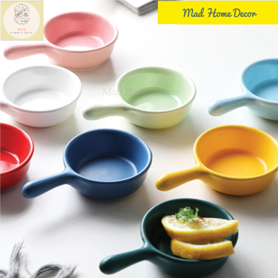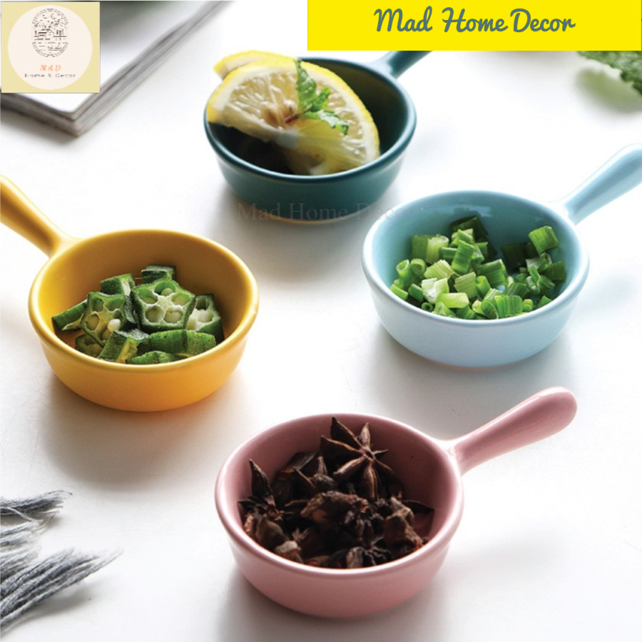 Đĩa sứ đựng nước chấm/ gia vị/ đồ ăn nhẹ có tay cầm men mờ độc đáo, tiện dụng, nhiều màu sắc👉 Đựng gia vị vệ sinh, đẹp mắt và thuận tiện để bạn thoải mái chế biến, bày biện các gia vị lỉnh kỉnh như hành, ớt, tiêu, quế hồi, nước mắm, nươc tương....vừa tạo cảm hứng cho người nấu lại rất sạch sẽ.