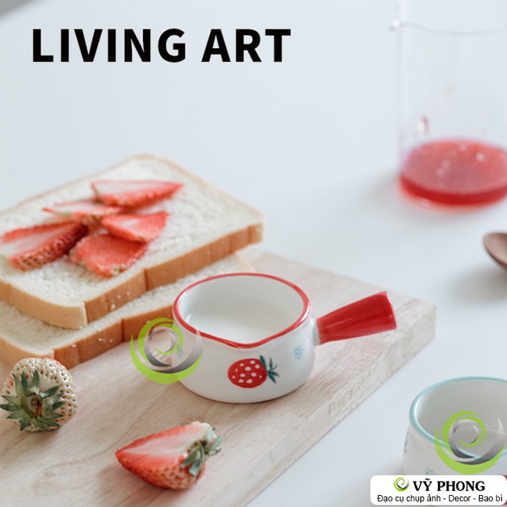 CHÉN SỨ NHỎ HÌNH TRÁI DÂU DỄ THƯƠNG CÓ TAY CẦM LIVING ART TRANG TRÍ BẾP CHỤP HÌNH ĐẠO CỤ CHỤP ẢNH SẢN PHẨM INS DCB-30