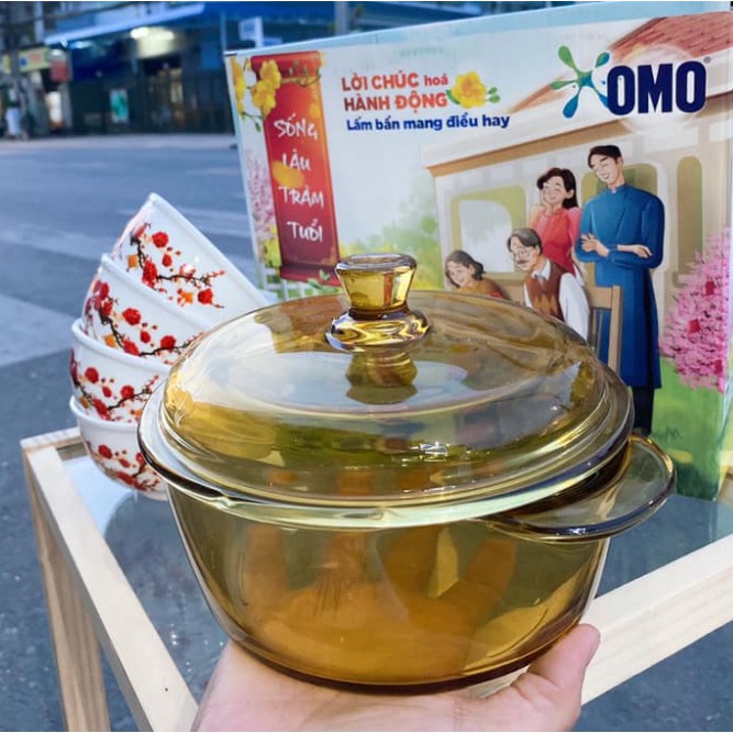 Bộ gồm 5 món:- 1 thố thủy tinh cao cấp có đường kính 20cm (thố dùng đựng thức ăn)