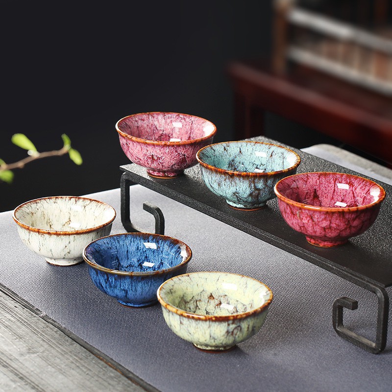 Chén uống trà uống rượu bằng gốm cao cấp tráng men hỏa biến cỡ lớn 100ml