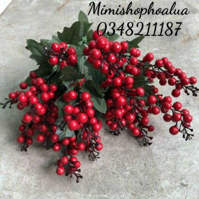 Cụmcherry màu đỏ dùng trang trí sự kiện, nhà cửa, cắm điểm với hoa lụa...Cành cao khoảng 35cm, gồm 7 nhánh nhỏ