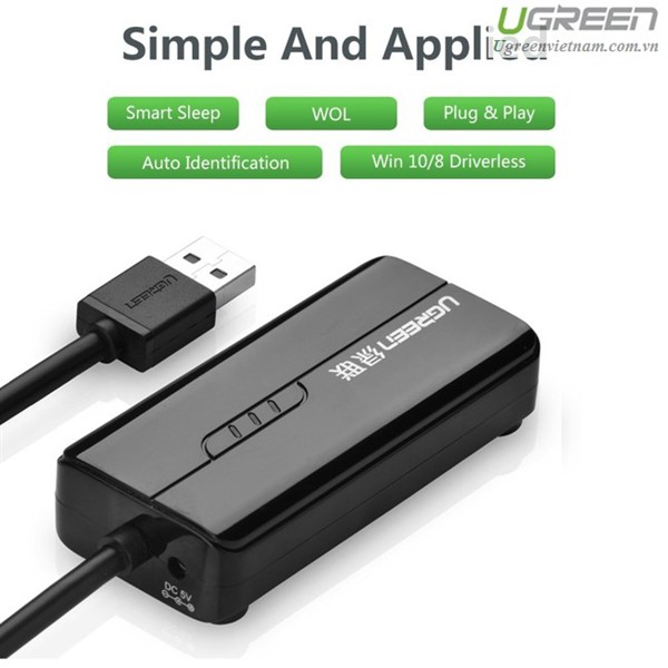 Bộ chia 3 cổng USB 2.0 kèm cổng mạng Ethernet 10/100Mbps Ugreen 20264 không chỉ có thể thêm một giao diện mạng để máy tính của bạn thông qua cổng USB,