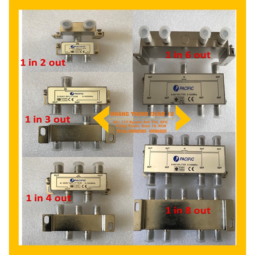 Thiết Bị Điện Gia Dụng > Tivi & Phụ kiện > Khác || CHIA CÁP TV PACIFIC Nhiều mẫu 1 in 2 out, 3 out, 4 out, 6 out, 8 out, Dùng để chia tín hiệu truyền hình cápCòn hàng