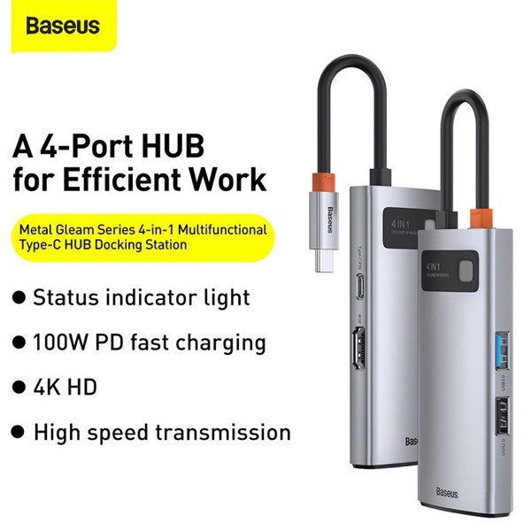 - Tên sản phẩm : Bộ Chia cổng 4 in 1 Baseus Type-C to HDMI 4k USB 3.0 USB 2.0 PD 100w cho Laptop Macbook