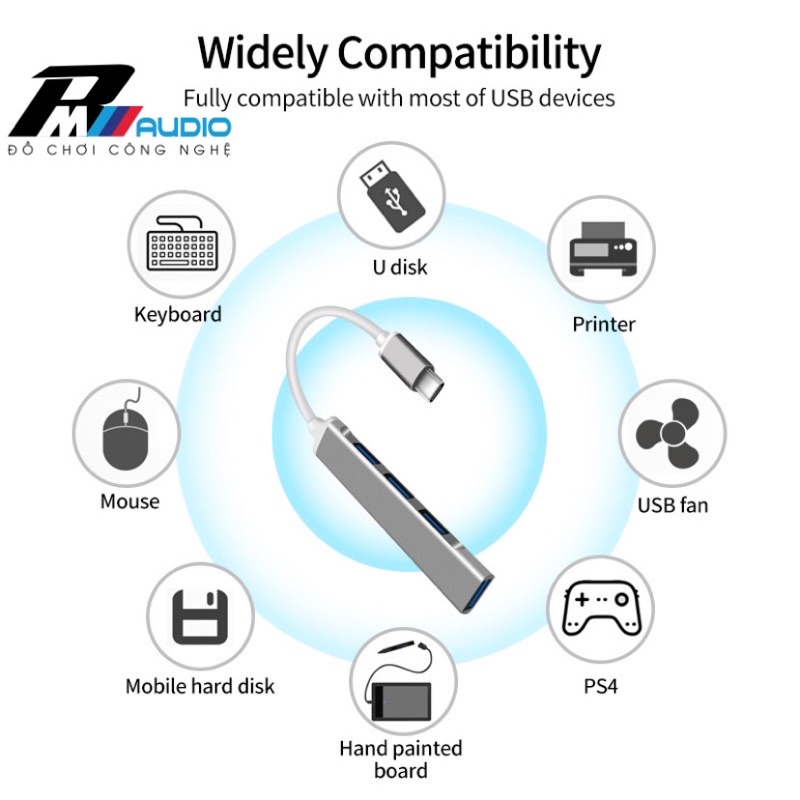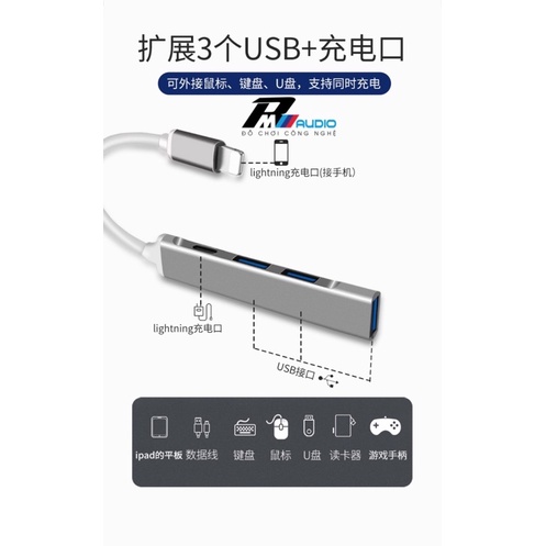 Bộ chia cổng USB,Hub USB-TyeC,Lightning có hỗ trợ OTG kết nối với điện thoại,bảo hành 1 đổi 1-BMVAUDIO