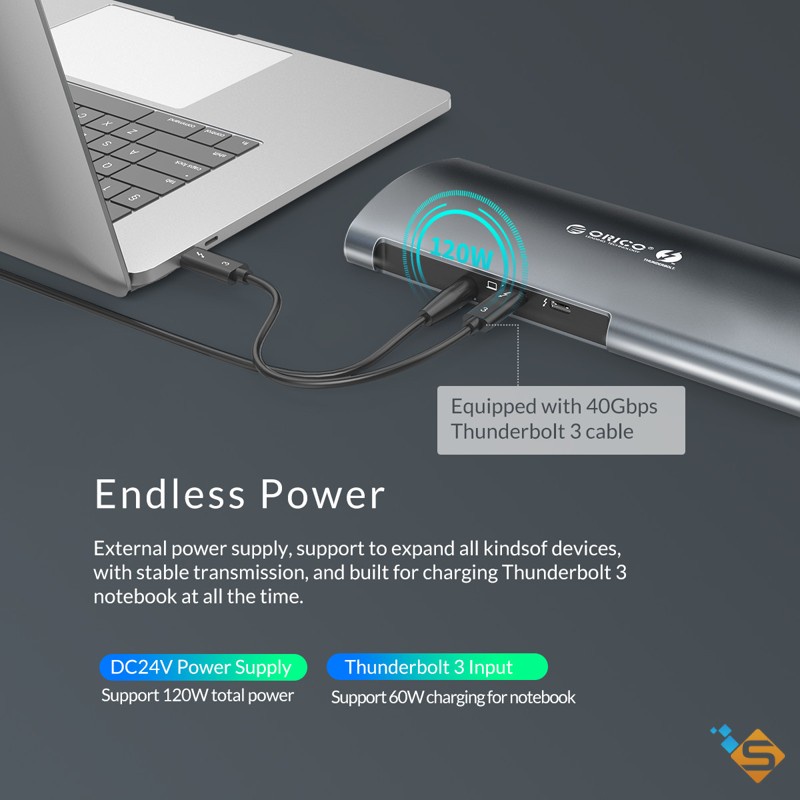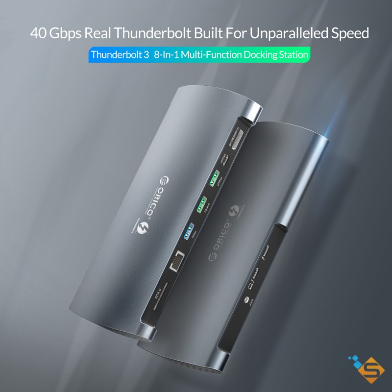 Máy tính & Laptop > Phụ Kiện Máy Tính > Bộ chia cổng USB & Đọc thẻ nhớ || Bộ Chia (Docking) ORICO 8 Trong 1 TB3-S1 Thunderbolt 3 USB 3.0 USB-C DP 3K RJ-45 TF/SD Dùng Cho MacBook - Bảo Hành 1 NămCòn hàng