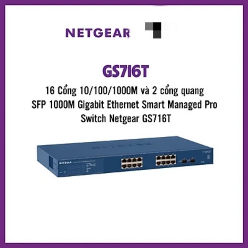 Bộ chia mạng đã qua sử dụng, hình thức đẹp.bộ chia mạng 16-Port Gigabit Ethernet Smart Switch with 2 SFP Ports NETGEAR GS716T