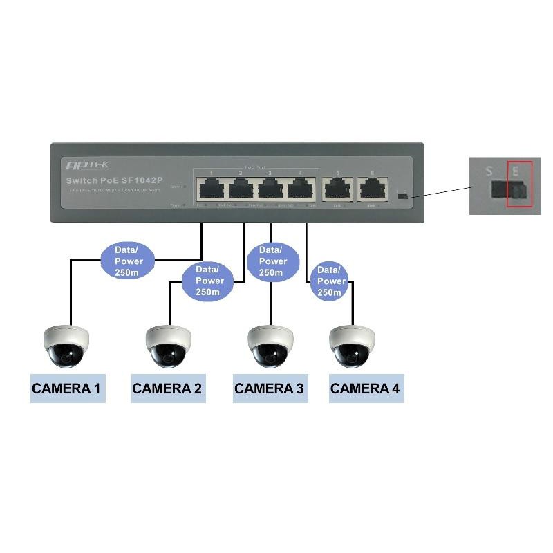 Giới thiệu Bộ chia mạng Switch 6 cổng (4 cổng PoE + 2 cổng Uplink ) APTEK SF1042P