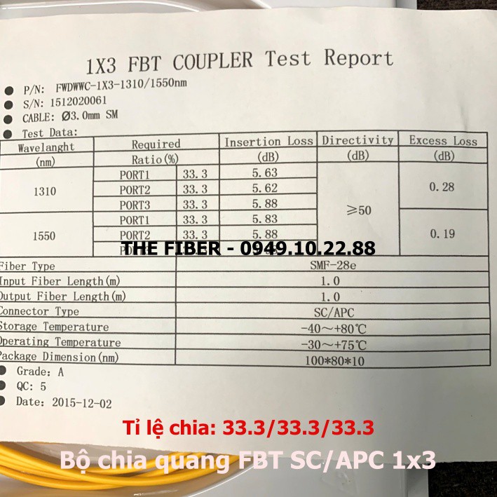 Giới thiệu Bộ chia quang FBT 1x3 SC/APC tỉ lệ 33.3/33.3/33.3% dài 1M, phi 3.0mm