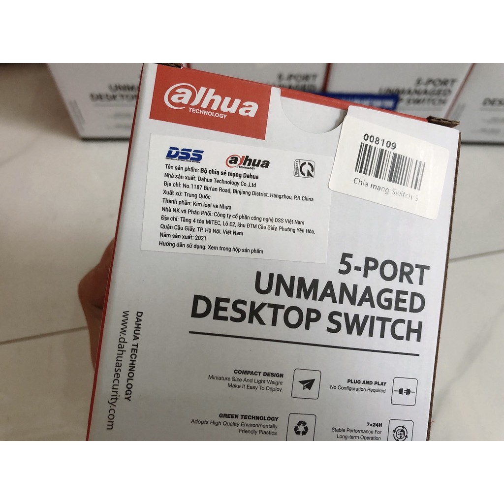 Bộ chia tín hiệu mạng 5 cổng Switch Dahua DH-PFS3005-5ET-L - 5 port - Chính hãng Bảo hành 24 tháng