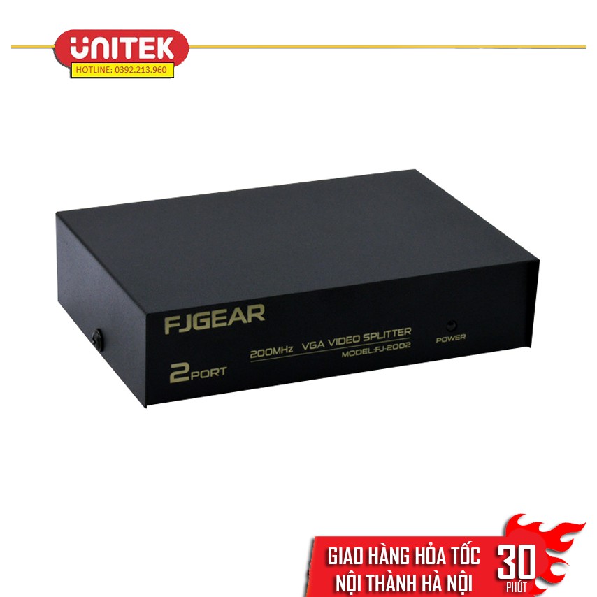 Bộ chia màn hình VGA FJ-2002 hai cổng chính hãng hỗ trợ kết nối 1 CPU ra 2 màn hình dùng chung, khả năng truyền tải tín hiệu từ 1 nguồn phát VGA ra 2 màn hình đồng thời cùng lúc với chất lượng tín hiệu ổn địnhHỗ trợ băng thông tới 200Mhz và độ phân giải FULL HD cho hình ảnh xuất ra sắc nét, là sản phẩm được sử dụng cho phòng họp, văn phòng, showroom,...