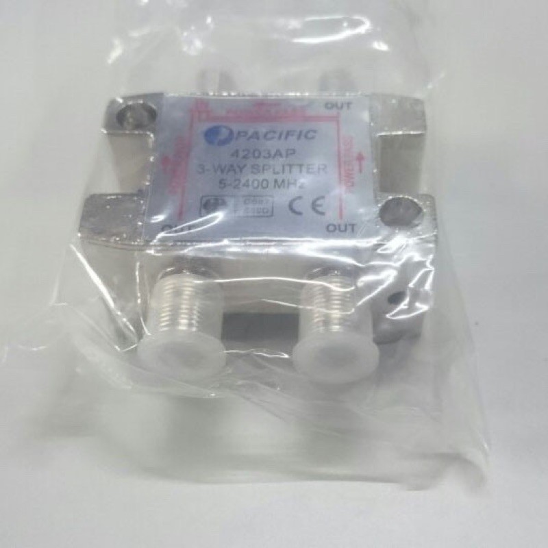 Bộ chia truyền hình cáp PACIFIC 1 ra 3 - 4203APBộ chia truyền hình cáp từ 1 ra 3 Tivi, Chia tín hiệu truyền hình cáp thường (Analog) và truyền hình cáp KTS HDTV, KTS SDTV, Bộ chia tín hiệu cao tần 5-2400 MHZ