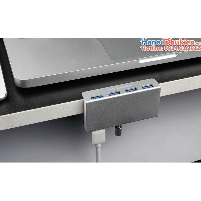 Bộ chia USB 3.0 hãng Hagibis có thiết kế nhỏ gọn vỏ nhôm Aluminium, tinh tế. Thiết kế dạng gắn màn hình, hoặc kẹp bàn làm việc. Giúp bạn dễ dàng kết nối các thiết bị cho máy tính, đi cáp gọn gàng. Tăng cường tính thẩm mỹ, không gian làm việc chuyên nghiệp.
