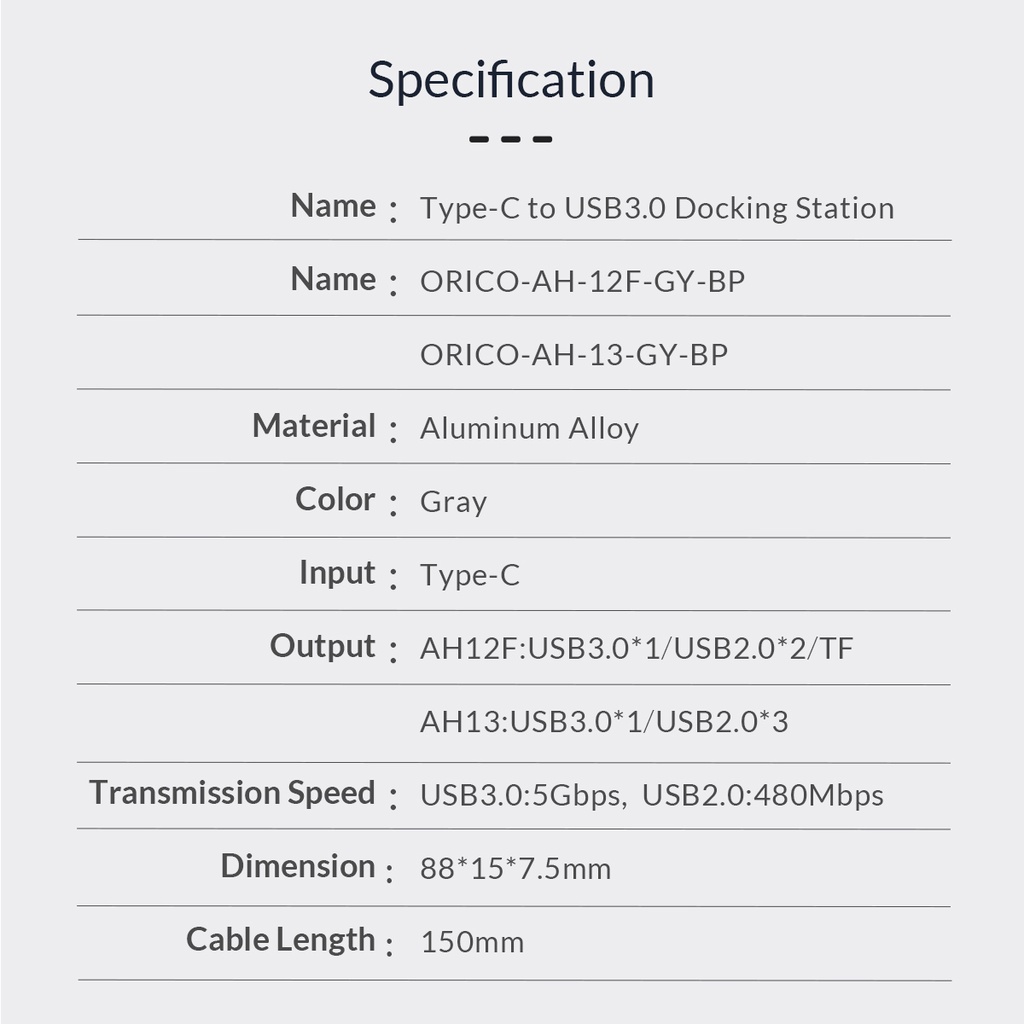 Máy tính & Laptop > Phụ Kiện Máy Tính > Bộ chia cổng USB & Đọc thẻ nhớ || Bộ Chia USB Orico Type C ra 4 cổng USB 3.0 & USB 2.0/ TF AH-13-GY-BP - Hàng Chính HãngCòn hàng
