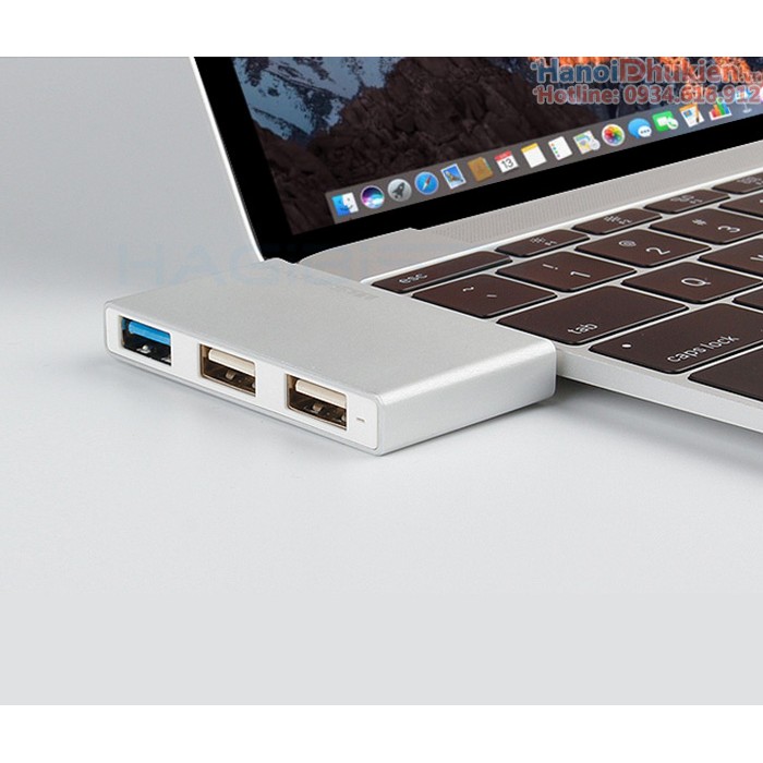 Bộ chia USB Type C (trên New Macbook gọi là Thunderbolt 3, USB-C, USB chuẩn C) ra 3 cổng USB chính hãng HagibisSản phẩm giúp bạn mở rộng kết nối máy tính, điện thoại với các thiết bị: Ổ cứng cắm ngoài, ổ cứng di động, HDD Box, USB Flash, chuột không dây, bàn phím, máy in, đầu đọc thẻ...