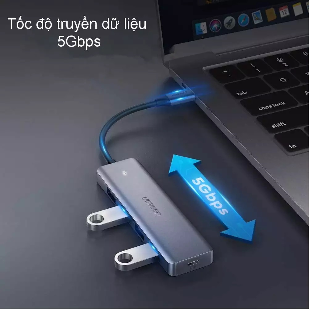 - Bộ chia USB 3.0 Type C Ugreen 50979 là bộ phụ kiện hoàn hảo dùng cho Laptop, Macbook... có cổng USB-C của bạn, cho phép mở rộng thêm 3 cổng USB 3.0 tốc độ cao lên đến 5Gbps.