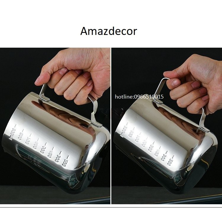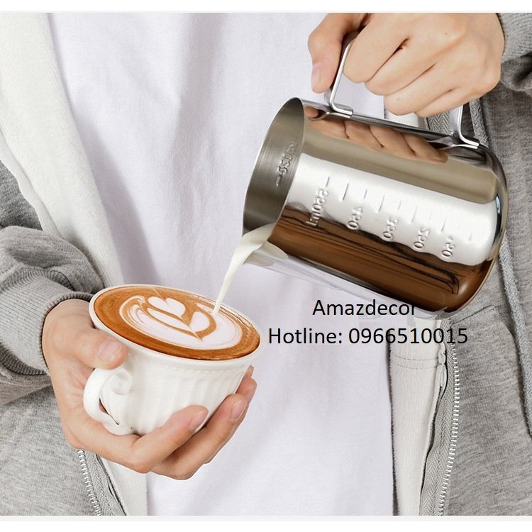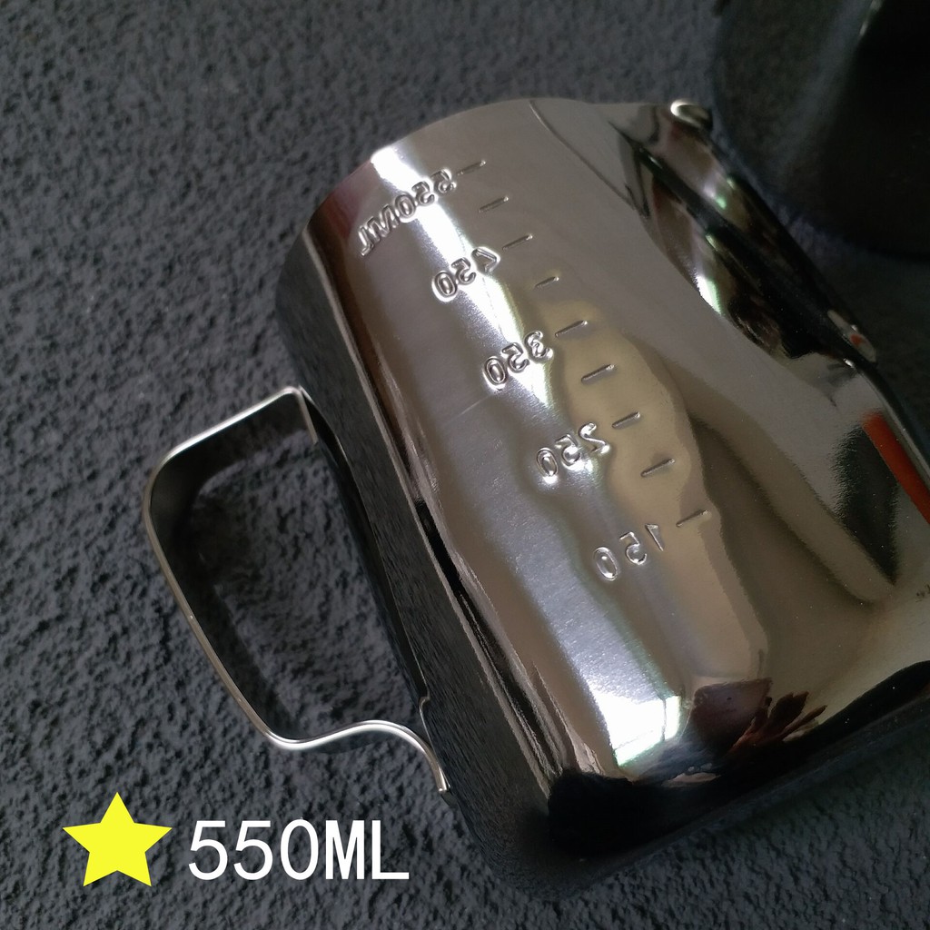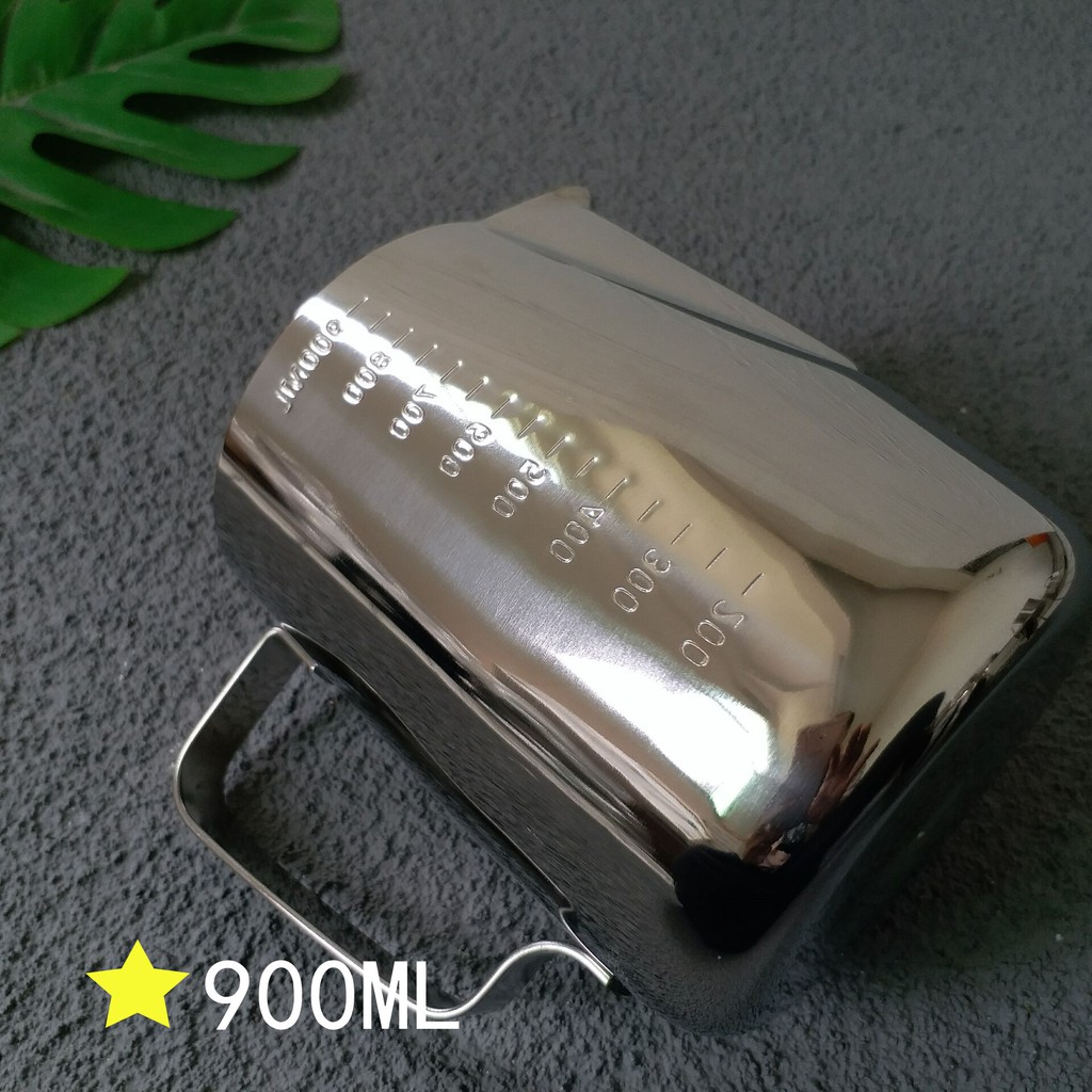 Có chia vạch Cốc ca đánh sữa inox 350ml - 550ml - 900ml (100% inox 304)cà phê Espresso