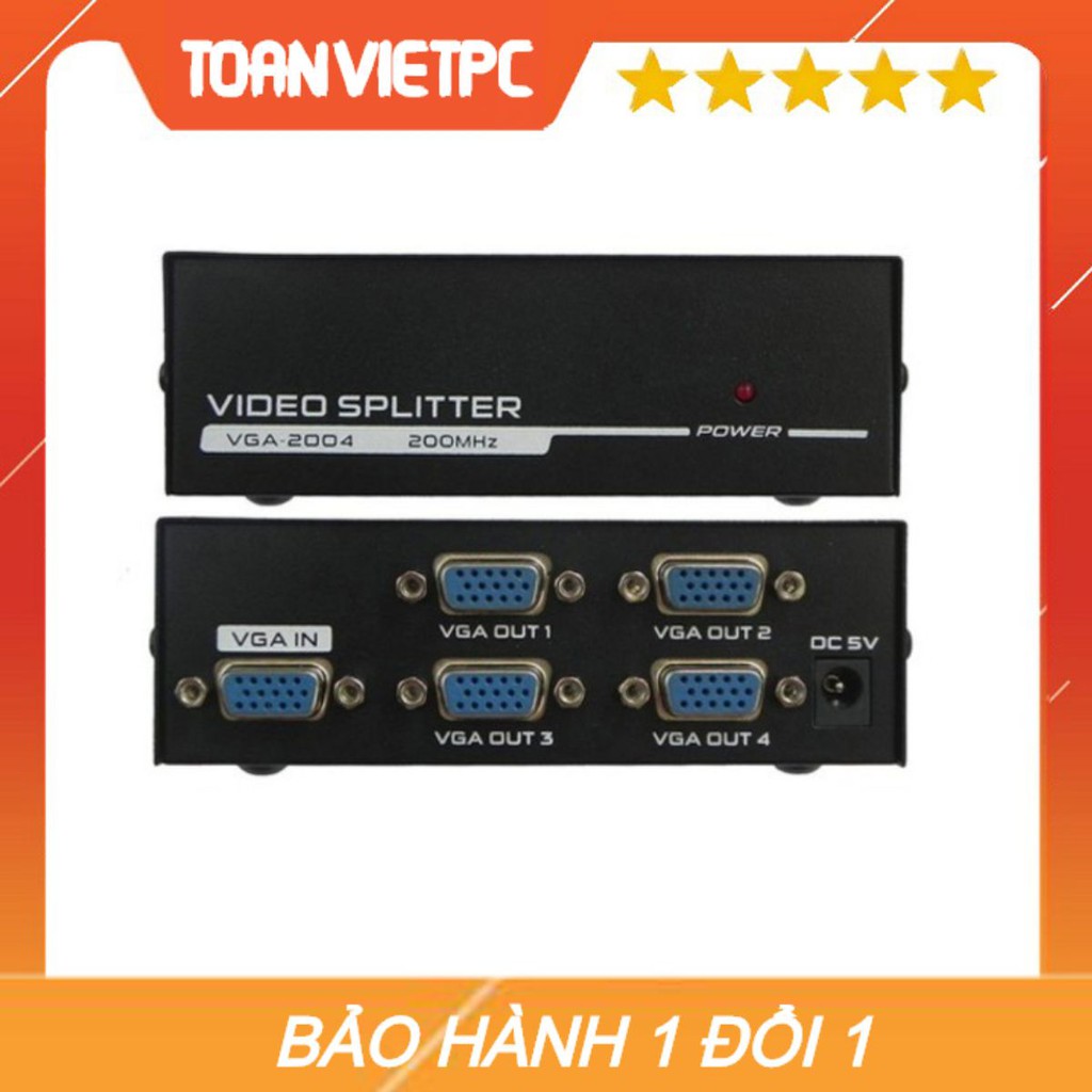 1. VGA splitter, 1x4, 1 đầu vào 4 đầu ra, 1 cổng cho tín hiệu đầu vào VGA, 4 cổng cho tín hiệu đầu ra VGA.