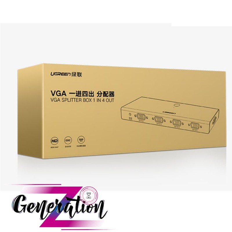 Bộ Chia VGA 1 Vào 4 Ra Cao Cấp Ugreen 50292Bộ chia cổng VGA 1 vào 4 ra cao cấp Ugreen 50292 là thiết bị giúp bạn dễ dàng chia sẽ 4 màn hình VGA cùng lúc cho 1 thiết bị phát hỗ trợ độ phân giải FullHD 1920*1080P@60Hz với băng thông 500Mhz, tính năng lọc ảnh giúp giảm bóng mờ, nhiễu, tận hưởng màn hình lớn với độ nét cao.
