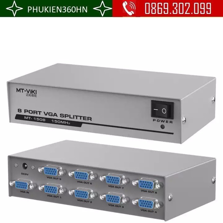 Bộ Splitter VGA dùng để mở rộng thêm tín hiệu VGA ra 8 cổng với băng thông lên đến 350 MHz. Sản phẩm thường được dùng cho cho thị trường chứng khoán, showroom siêu thị, giáo dục và các ngành công nghiệp khác vvv…Bộ chia dùng để chia 1 CPU ra 8 màn hình song song đồng thời với độ nét cao.