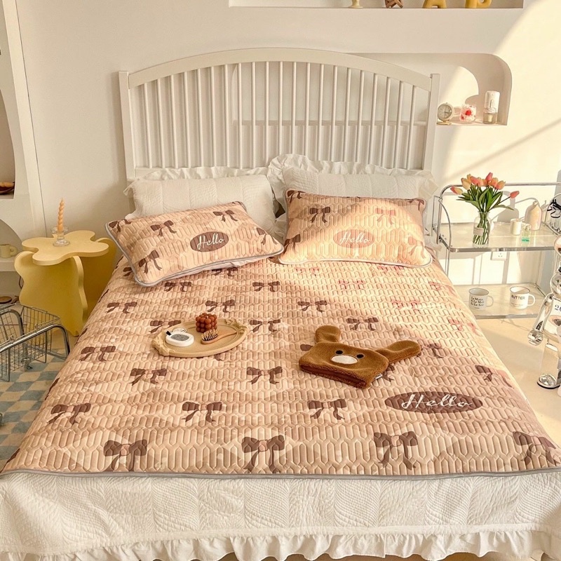 Set chiếu có cả 2 vỏ gối cùng màu đi kèm, khác hẳn các loại chiếu truyền thống nên trải lên giường đẹp mê li hehe.