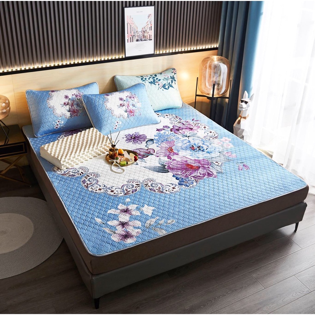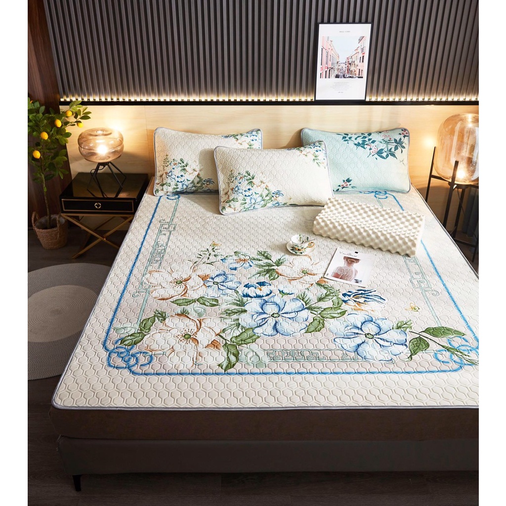 Chiếu điều hoà cao su non 5D Tặng Kèm thảm chân Nệm điều hoà mủ cao su cao cấp hoạ tiết hoa Tặng kèm 2 vỏ gối cùng màu