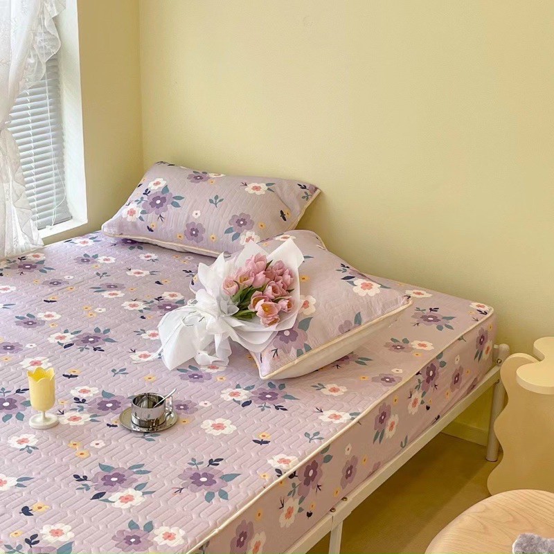 CHIẾU ĐIỀU HOÀ CAO SU NON LATEX BỌC CHUN - HOA TÍM